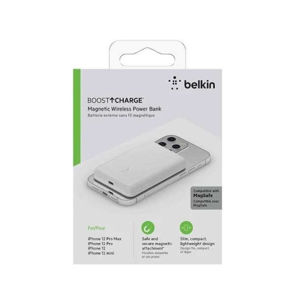 The Belkin 2500mAh Magnetic MagSafe Compatible Wireless Power Bank delivers a seamless charging experience for iPhone users who demand convenience without compromising mobility. Engineered with a slim, lightweight profile, this snap-on backup battery aligns precisely with MagSafe-equipped iPhone 14, 13, and 12 models, ensuring a secure magnetic hold during daily use, travel, or commutes.
