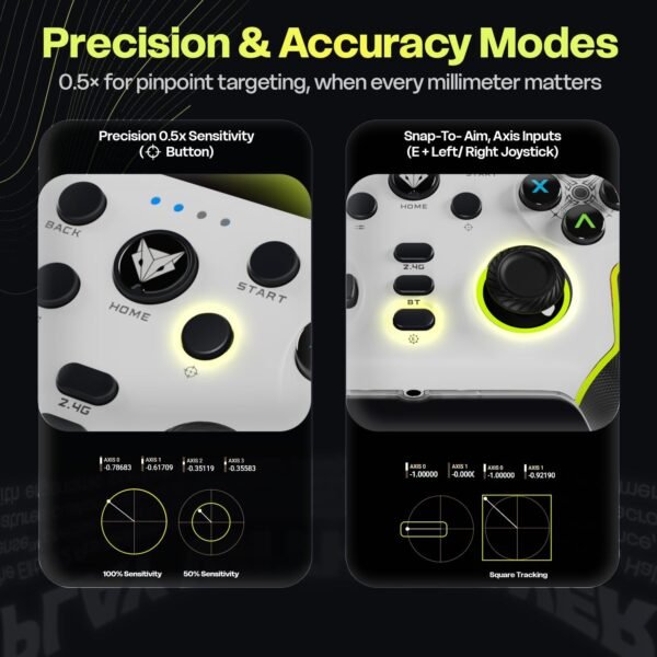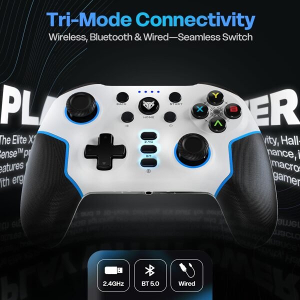 Equipped with multi-platform compatibility, the Elite X2 Pro connects effortlessly to PC, laptops, and supported Android devices via wired or wireless mode. The built-in dual vibration motors provide immersive feedback, and the turbo function gives you an edge in fast-action combat. With a long-lasting battery and ultra-low latency, you experience uninterrupted gaming without input lag.