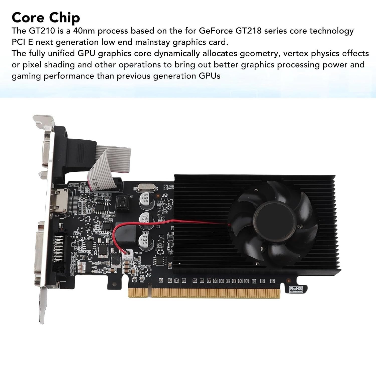 Designed with low power consumption, the Gamers Choice GT210 is suitable for both compact and standard desktop systems. Whether upgrading an older PC or building a basic workstation, this graphics card offers dependable graphics performance for everyday use.