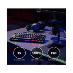 - Aqua Switch: Equipped with HyperX’s Aqua mechanical switches, the keyboard delivers tactile feedback and rapid response, ensuring precision and accuracy in every keystroke.