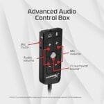 Advanced audio control boxEasily toggle Surround Sound 7.1 on and off with a touch of a button. Includes independent audio and microphone volume controls for added convenience. The Internal sound card DSP amplifies audio and voice for optimal HiFi gaming experience. |