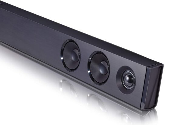 Designed with Adaptive Sound Control (ASC), the soundbar automatically adjusts audio levels based on what you’re watching—ensuring crisp dialogue, balanced mid-tones, and rich cinematic effects. Bluetooth connectivity allows seamless wireless streaming from smartphones, tablets, and compatible TVs, while LG Auto Sound Engine maintains precise audio output at any volume level.