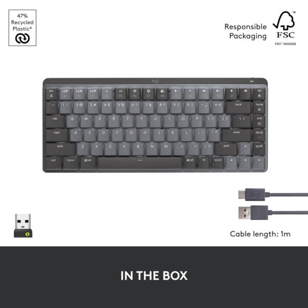 With Bluetooth and Logi Bolt wireless connectivity, the MX Mechanical Mini supports pairing with up to three devices and enables effortless switching between laptops, desktops, and tablets. Powered via USB-C fast charging, it offers long battery life even with backlighting enabled.