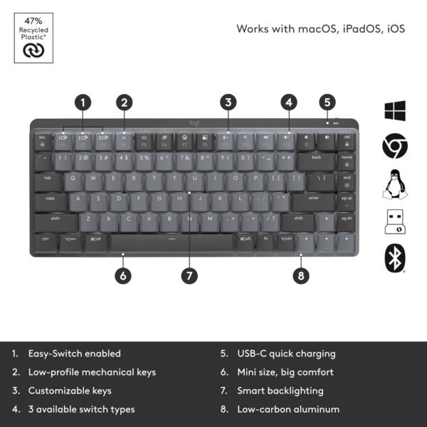 Compatible with Windows, macOS, Linux, iPadOS, Android, and ChromeOS, this keyboard adapts seamlessly across platforms. A free Adobe subscription adds extra value for creative professionals. If you want precision typing in a compact, premium design, the MX Mechanical Mini is a serious productivity upgrade.