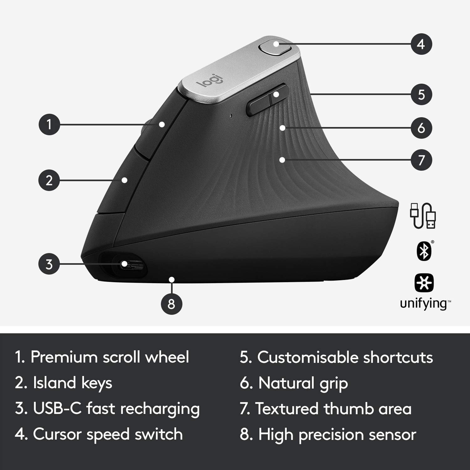 • Logitech MX Vertical wireless mouse with ergonomic vertical design
