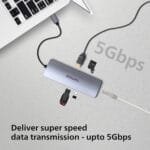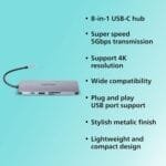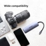 - Compact and Portable: Designed for portability, this hub fits easily into any bag or laptop case, making it ideal for travel and on-the-go use.