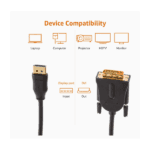 Easily connect a desktop or laptop with DisplayPort to an HD monitor or projector with DVI input using this AmazonBasics DisplayPort to DVI cable. The convenient cable transmits high-definition video from your computer to a monitor—ideal for video streaming or gaming. It also makes it possible to quickly connect and configure a secondary monitor (1920×1200 or 1080p) for extending a desktop or creating mirrored displays.