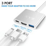 - (3-in-1 USB-C to HDMI) Multiport USB C adapter includes a Type-C to HDMI 4K output port, a USB-C charging port and a USB 3.0 port. The compact design makes it easy to carry around in pocket. 3-in-1 design avoids the trouble of carring too much converter devices. Don’t need to install extra drivers.